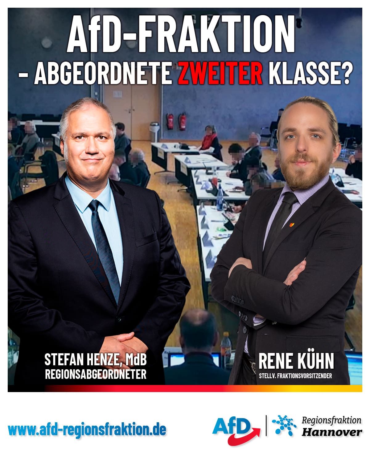„Der Regionspräsident teilt die Abgeordneten in zwei Klassen ein – das zeigt seine Antwort ganz deutlich. Auch die AfD-Fraktion hat selbstverständlich das Recht, an diesem Gespräch teilzunehmen. Schließlich geht es alle Mitglieder der Regionsversammlung an.“