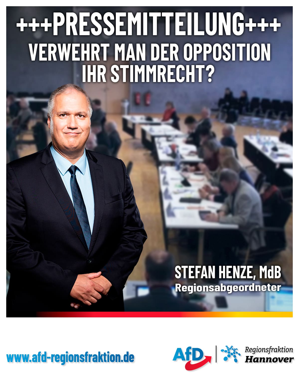 „Es gibt keinen ersichtlichen Grund, warum eine digitale Teilnahme an dieser Sitzung nicht möglich sein sollte“, kritisiert Stefan Henze, MdB und Regionsabgeordneter der AfD.